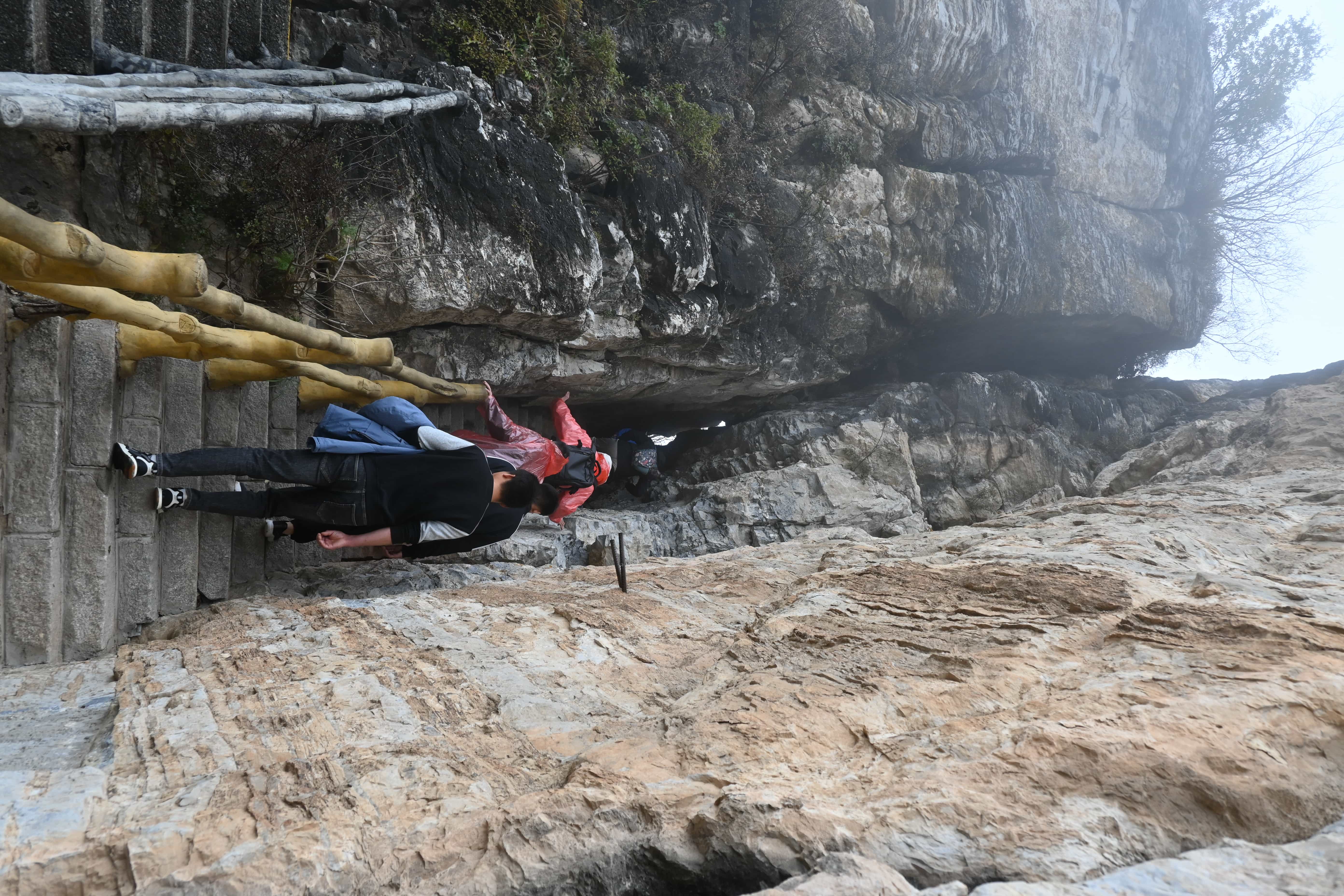 开篇的景色注定了这次的白石山之行会让人留下深刻的印象。正式进入登山的栈道,映入眼帘的便是在险峰之间穿越环绕的石板路。不得不让人感叹修建栈道的工人的勇气,作为游客即便走在围好护栏的石板上依然是心惊胆战。山因为险而风格多变,真应了那句横看成岭侧成峰,远近高低各不同。石头的斑驳纹路,仿佛在向人们诉说着那些沧海桑田,世事变迁的故事。大自然的神奇,只有当我们真正置身其中,站在他们面前时才能感受到。自然的伟大与人类的渺小,一座白石山便能够窥探。