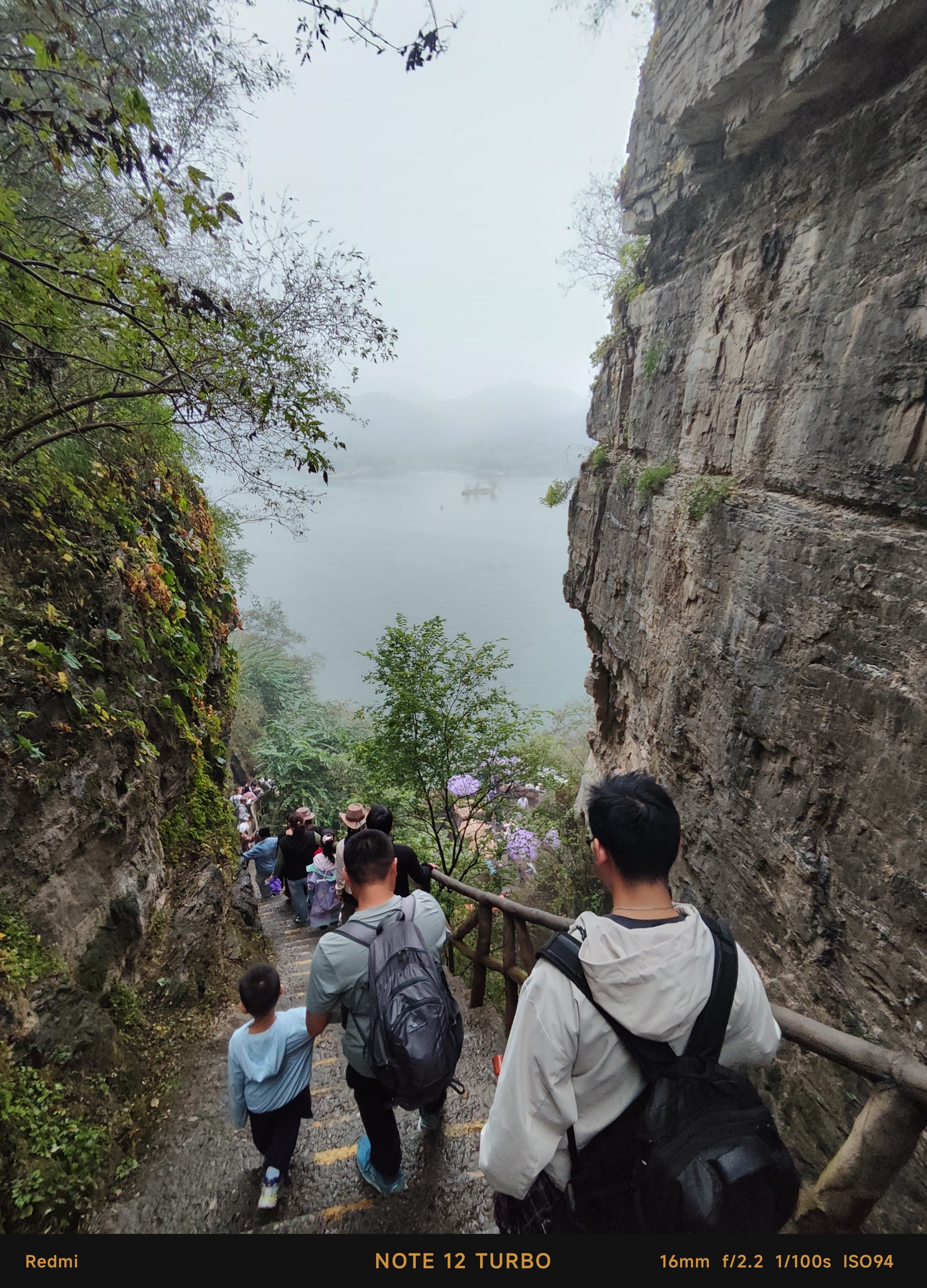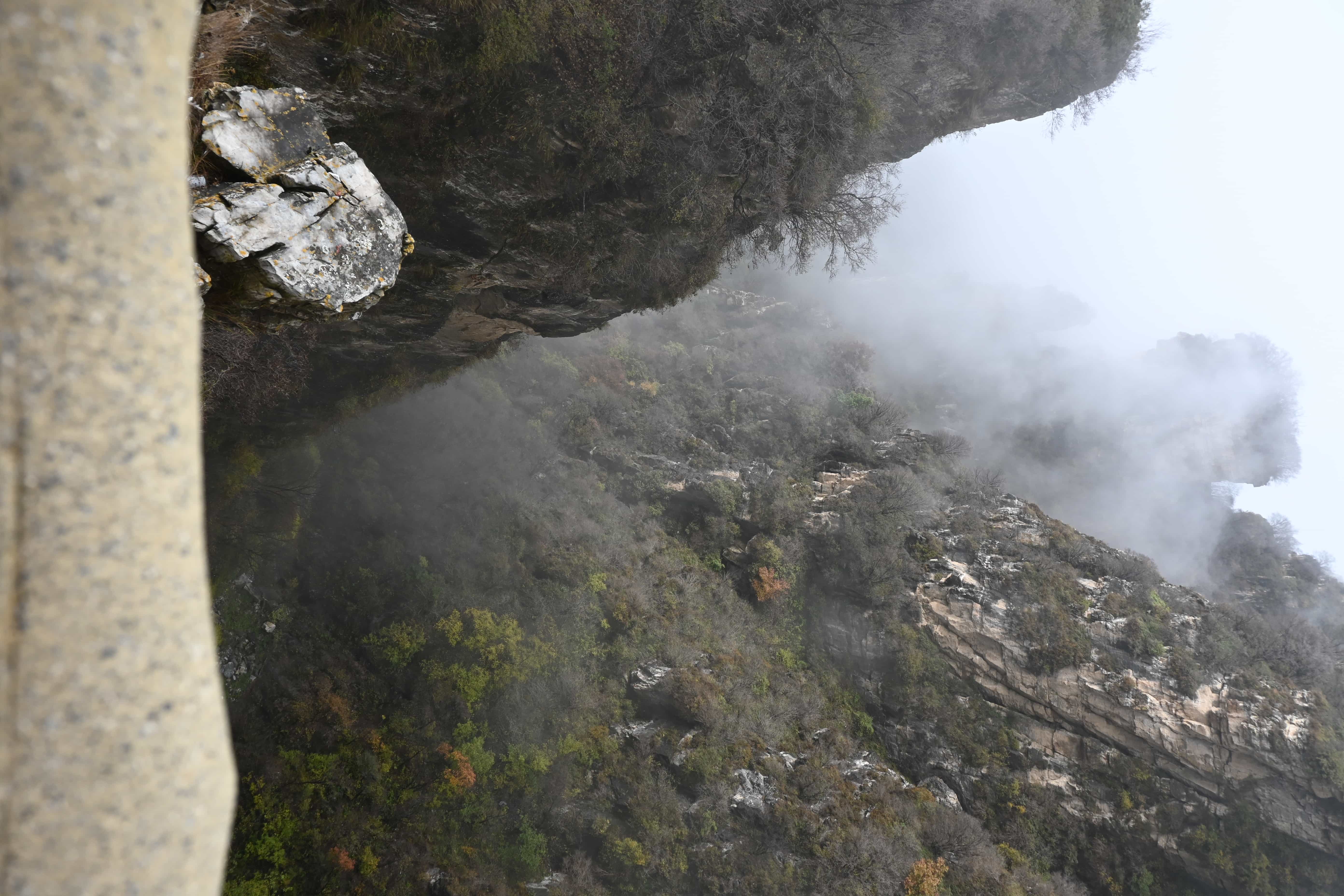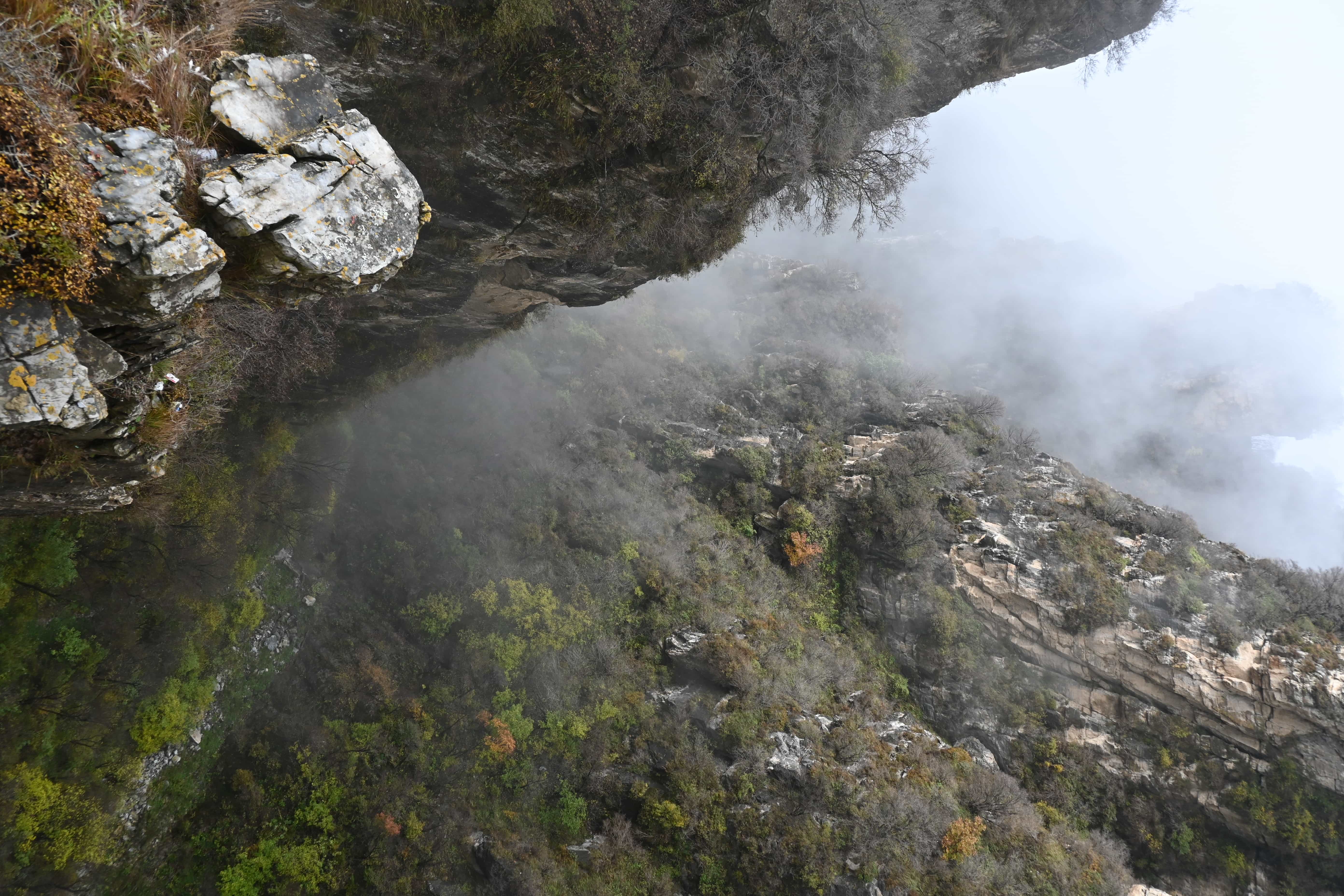 词穷的我只能尝试去描述眼前的景象,但或许影像更能直观的展示当时的视角。我们一起看见了白石山的陡峭、巍峨,随着云雾一同攀登而上,在山腰眺望云海的虚幻渺然,从山顶俯瞰山谷的幽深艰险,与攀登缆绳的人们共同感受自然的神奇。白石山,在时间的长河里我们在此刻相遇,当我离开,它仍将久久的矗立,直到下一次山海变迁,再与另外的人们不期而遇。