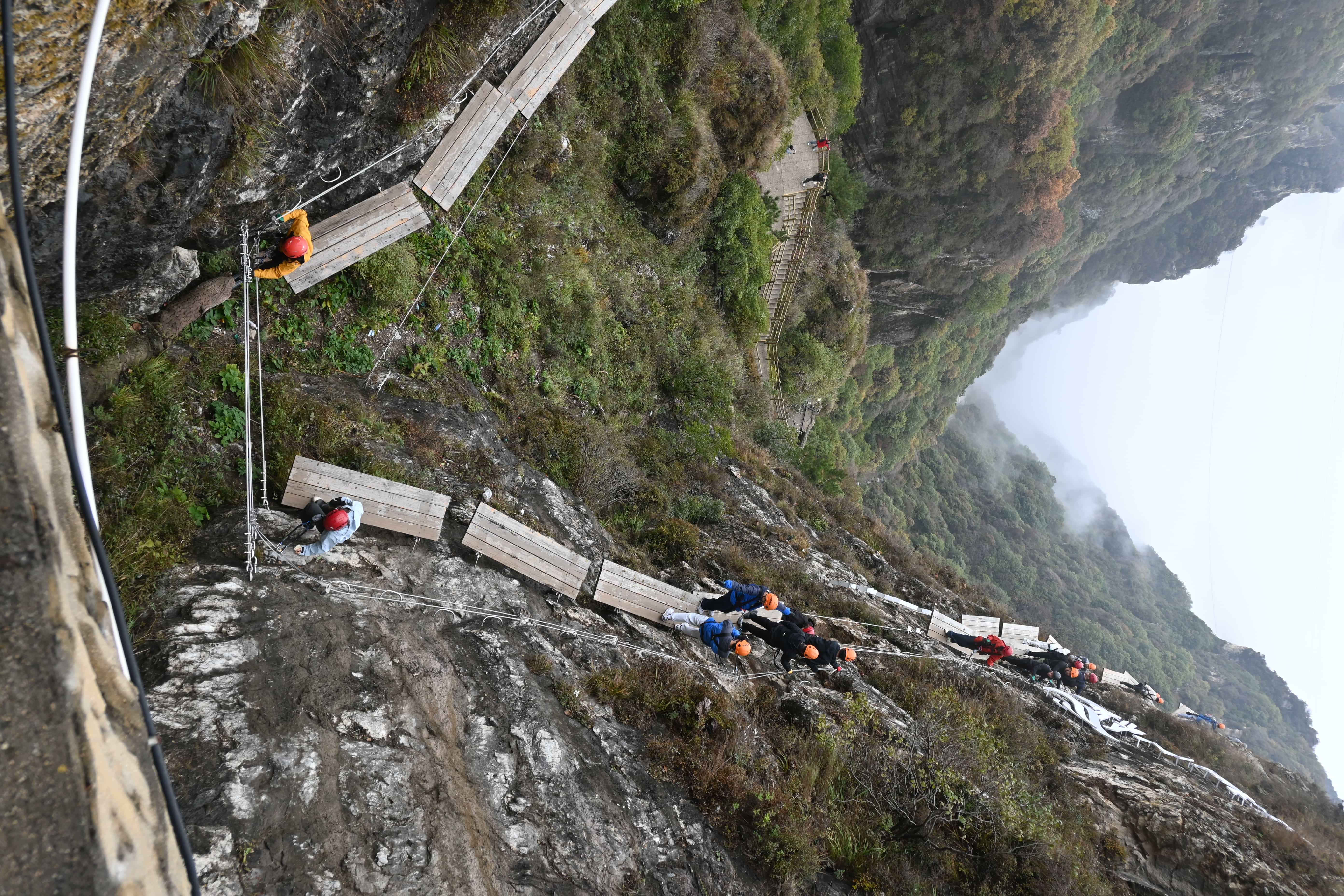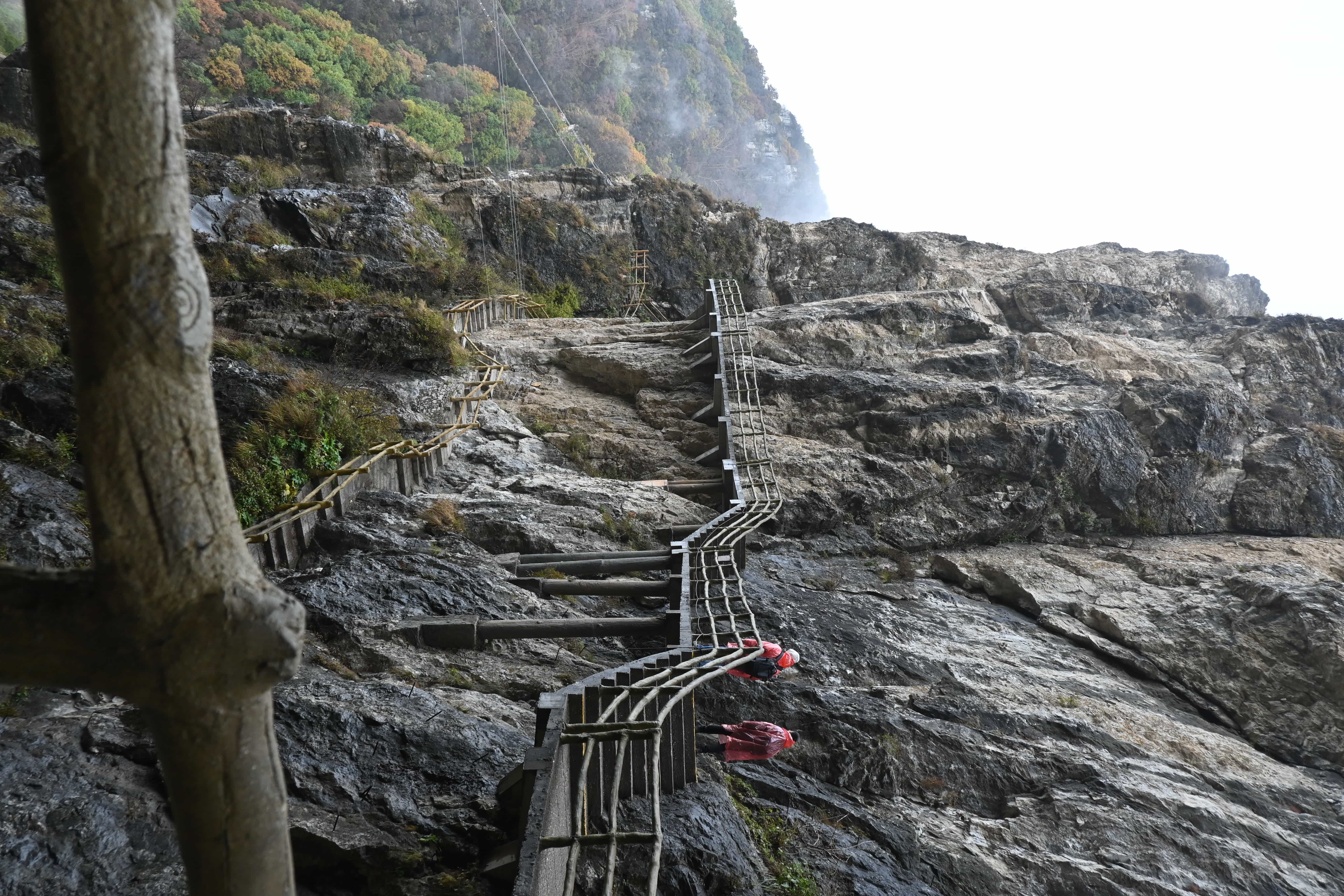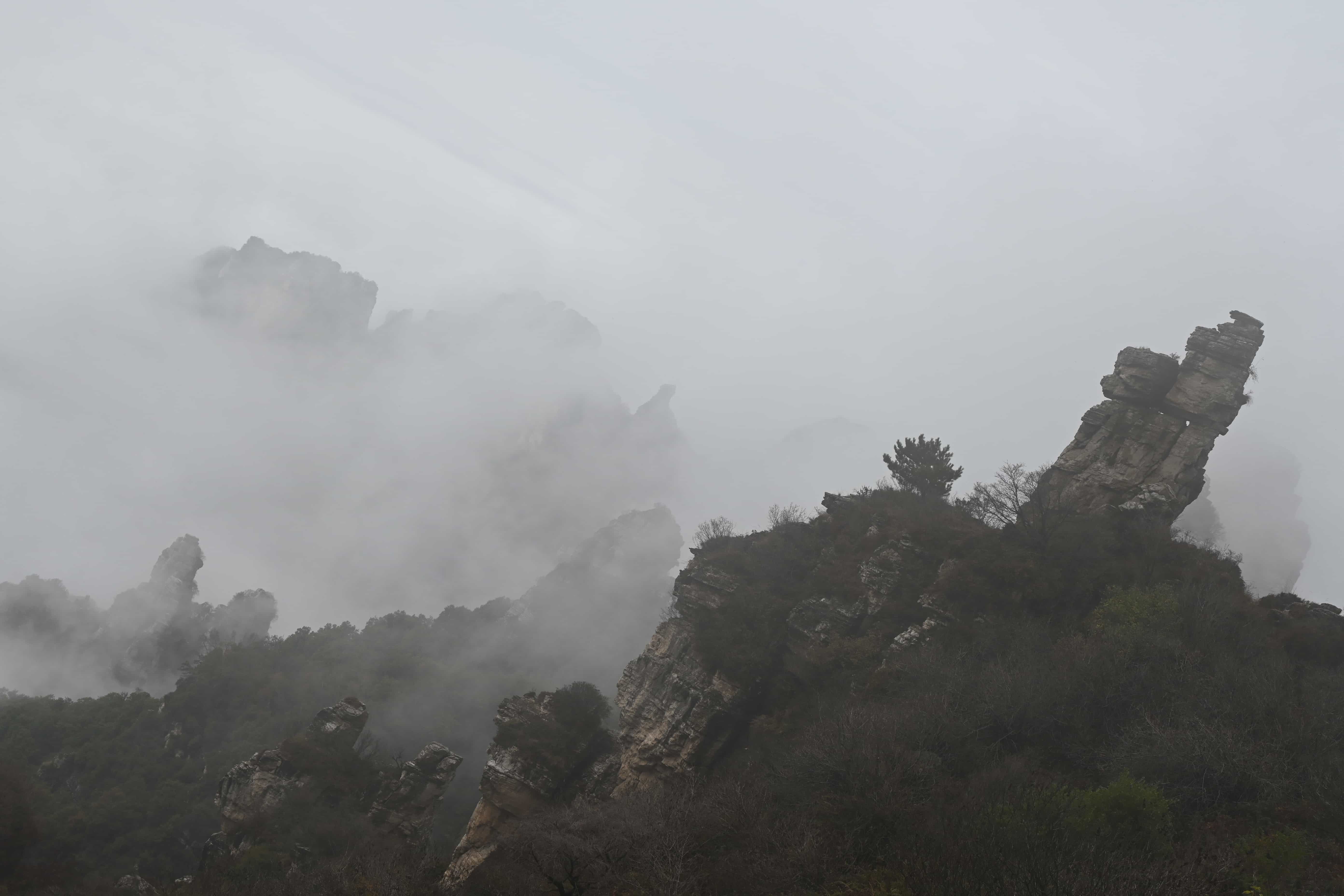词穷的我只能尝试去描述眼前的景象,但或许影像更能直观的展示当时的视角。我们一起看见了白石山的陡峭、巍峨,随着云雾一同攀登而上,在山腰眺望云海的虚幻渺然,从山顶俯瞰山谷的幽深艰险,与攀登缆绳的人们共同感受自然的神奇。白石山,在时间的长河里我们在此刻相遇,当我离开,它仍将久久的矗立,直到下一次山海变迁,再与另外的人们不期而遇。